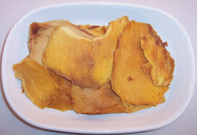 And finally, a snack I've really come to love as it has appeared in several subscription boxes...dried mango chews.  As you can see, looks are not their strong point but flavor is. These are very hard on your teeth; you can't consume one without slobbering!  But they're worth the effort and my bag of them is already almost gone.